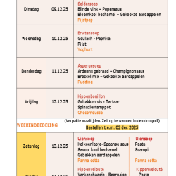 In het weekend en op feestdagen kun je ook gebruikmaken van deze dienst. De maaltijden worden dan vooraf verpakt geleverd, om nadien op te warmen.