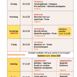 Hieronder vind je een overzicht van de sluitingsdagen van de dienst maaltijdbezorging en onze administratieve diensten in 2025.