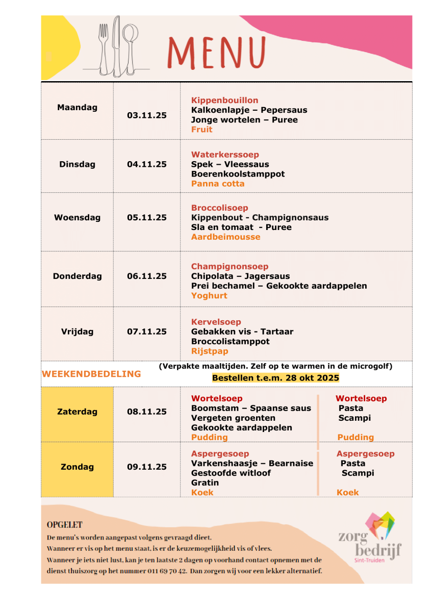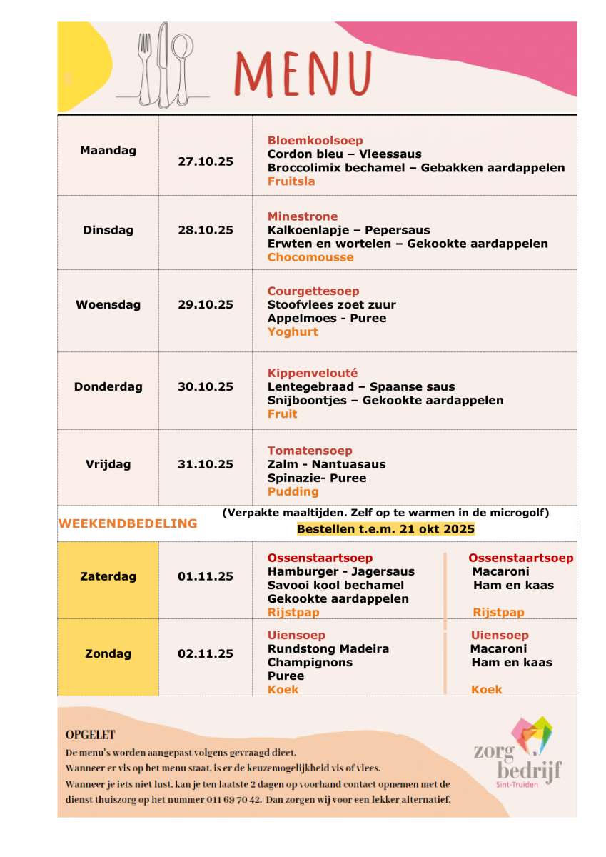 Alle inwoners van Sint-Truiden kunnen een beroep doen op de maaltijdbezorging van Zorgbedrijf Sint-Truiden.