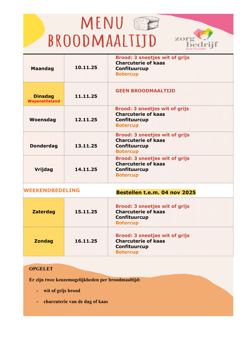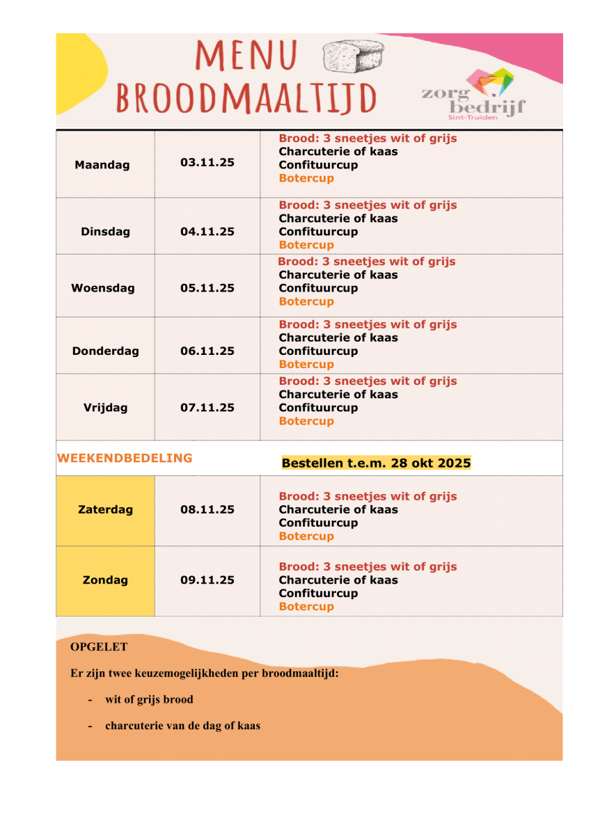Op dagen dat je een warme maaltijd afneemt, kan je ook een broodmaaltijd laten leveren.