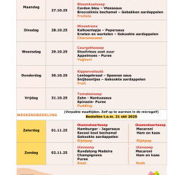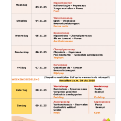 In het weekend en op feestdagen kun je ook gebruikmaken van deze dienst. De maaltijden worden dan vooraf verpakt geleverd, om nadien op te warmen.