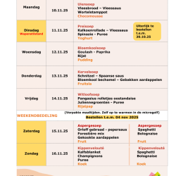 De soep is steeds vetarm. Mits aanvraag bij de thuiszorg kunnen alle maaltijden vet- en zoutarm gemaakt worden. Ook dieetmaaltijden kunnen na afspraak geregeld worden.